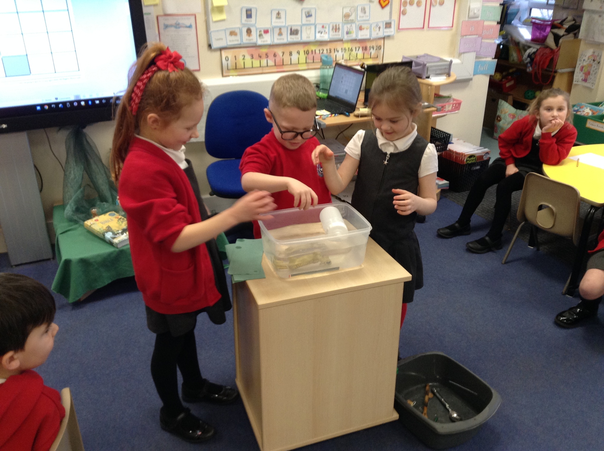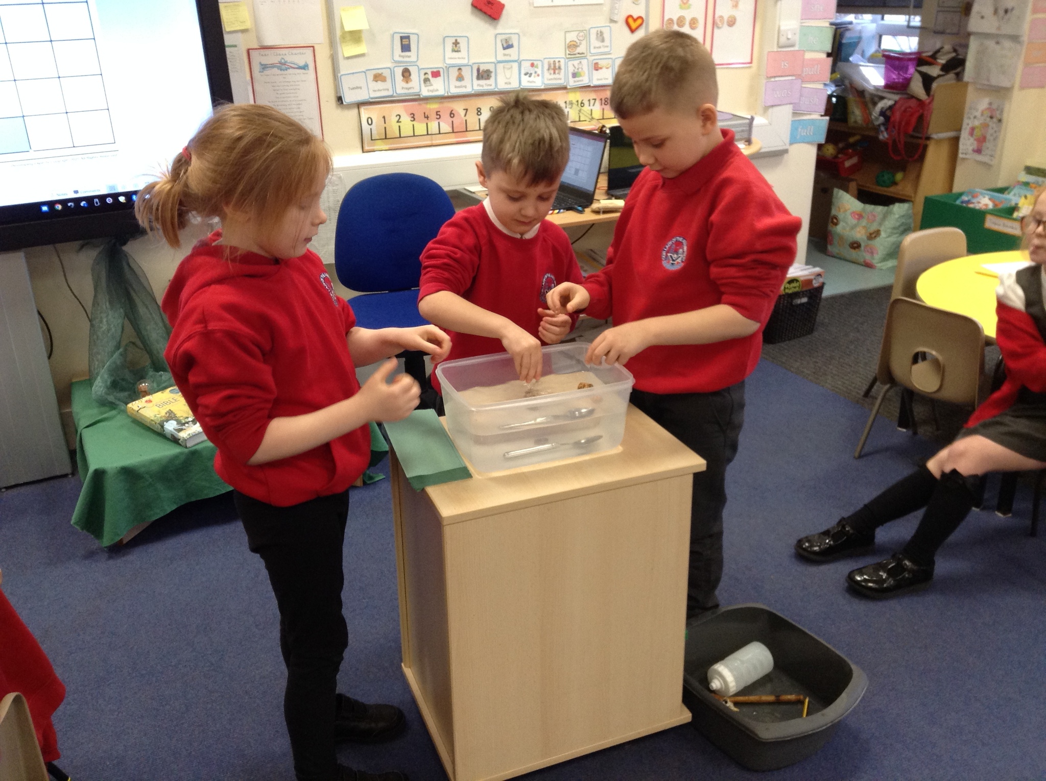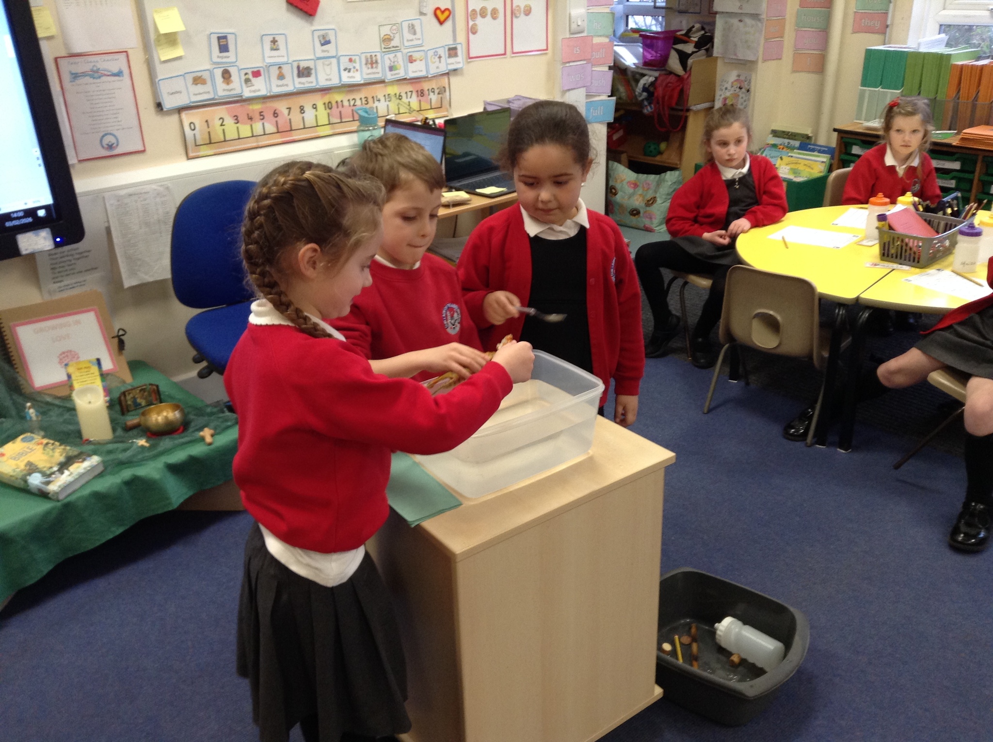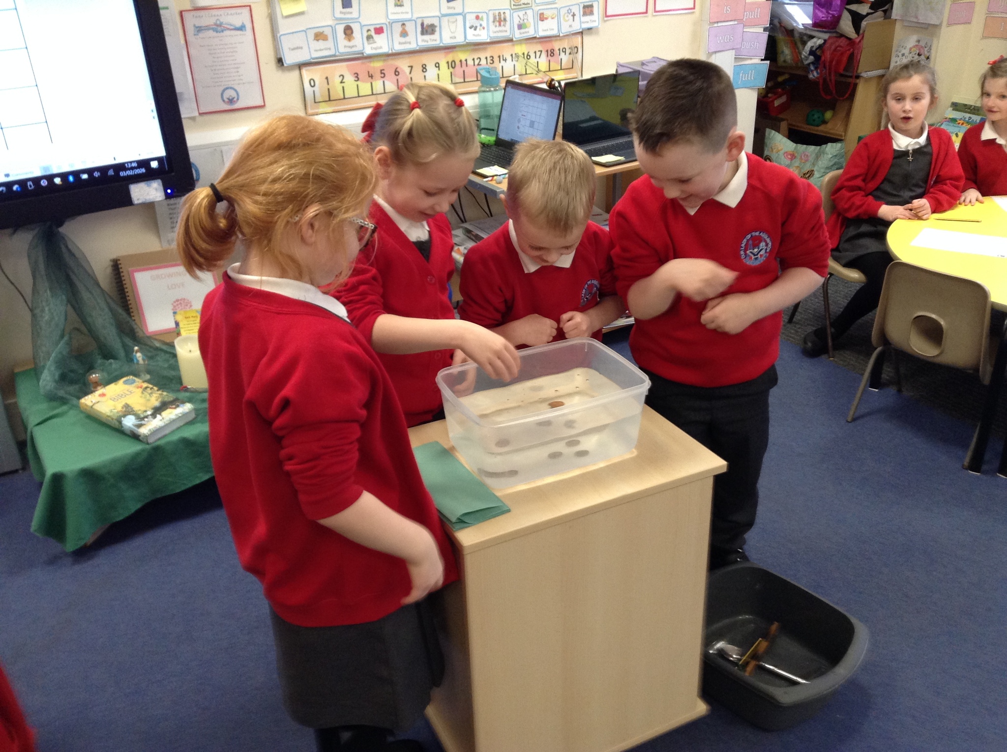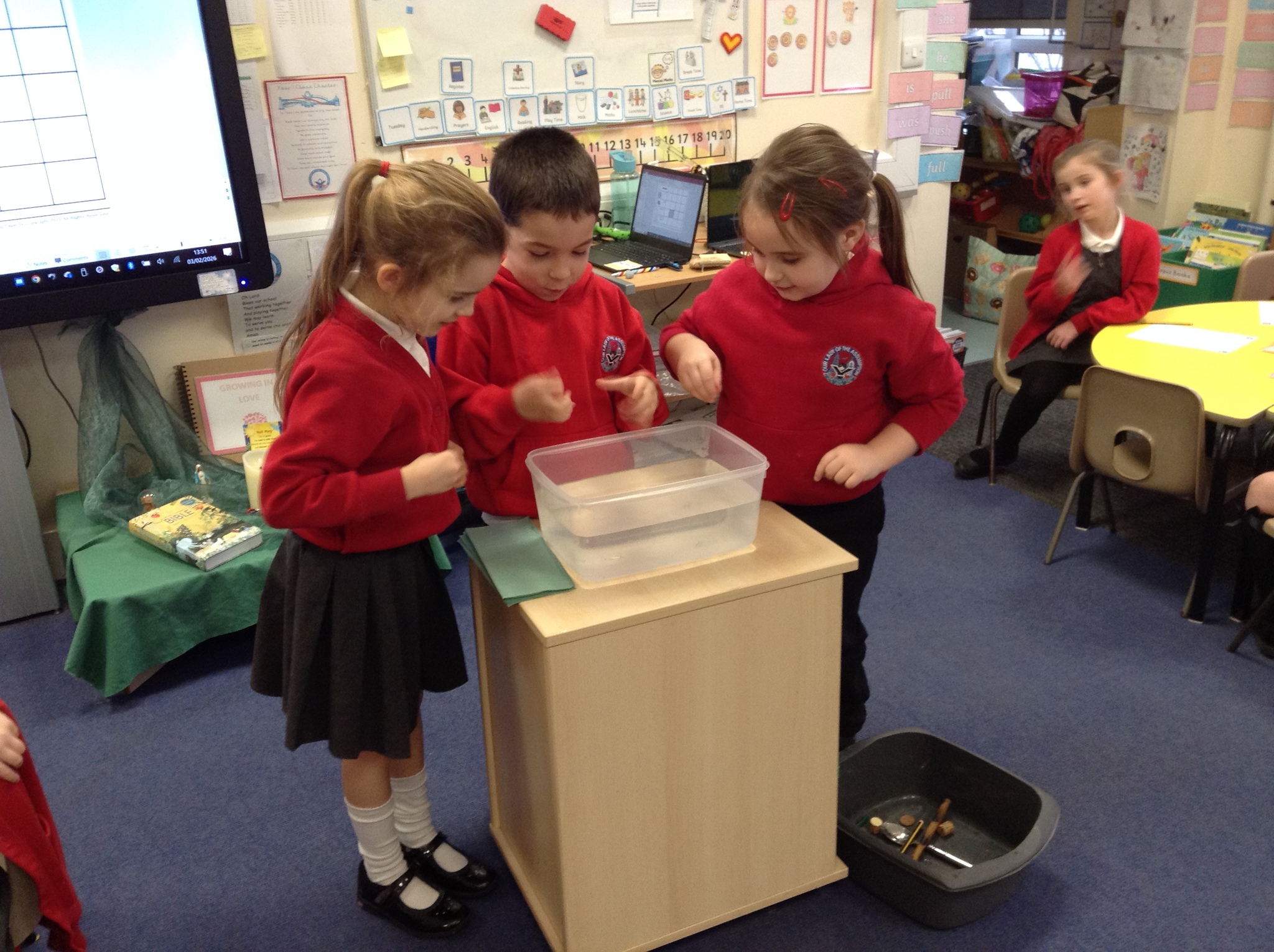 Science – this week we continued with our Science topic on Materials by examining a range of everyday items and looking for materials that float and sink. Great fun was had by all.