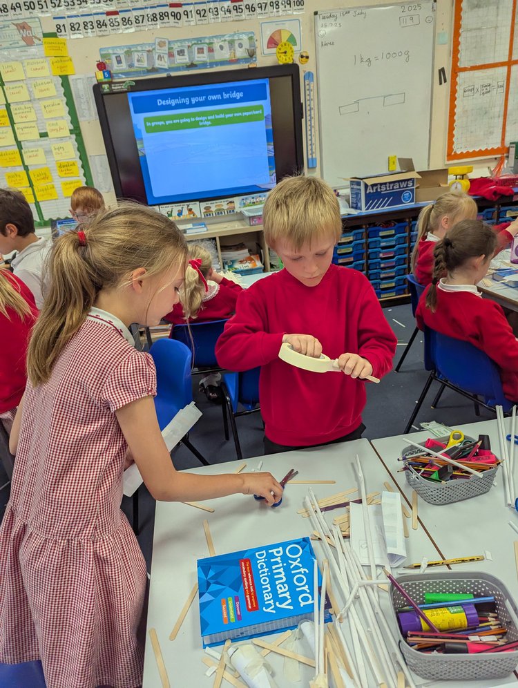 Science - We applied our knowledge of materials to build our own bridges and see how much weight they could hold.