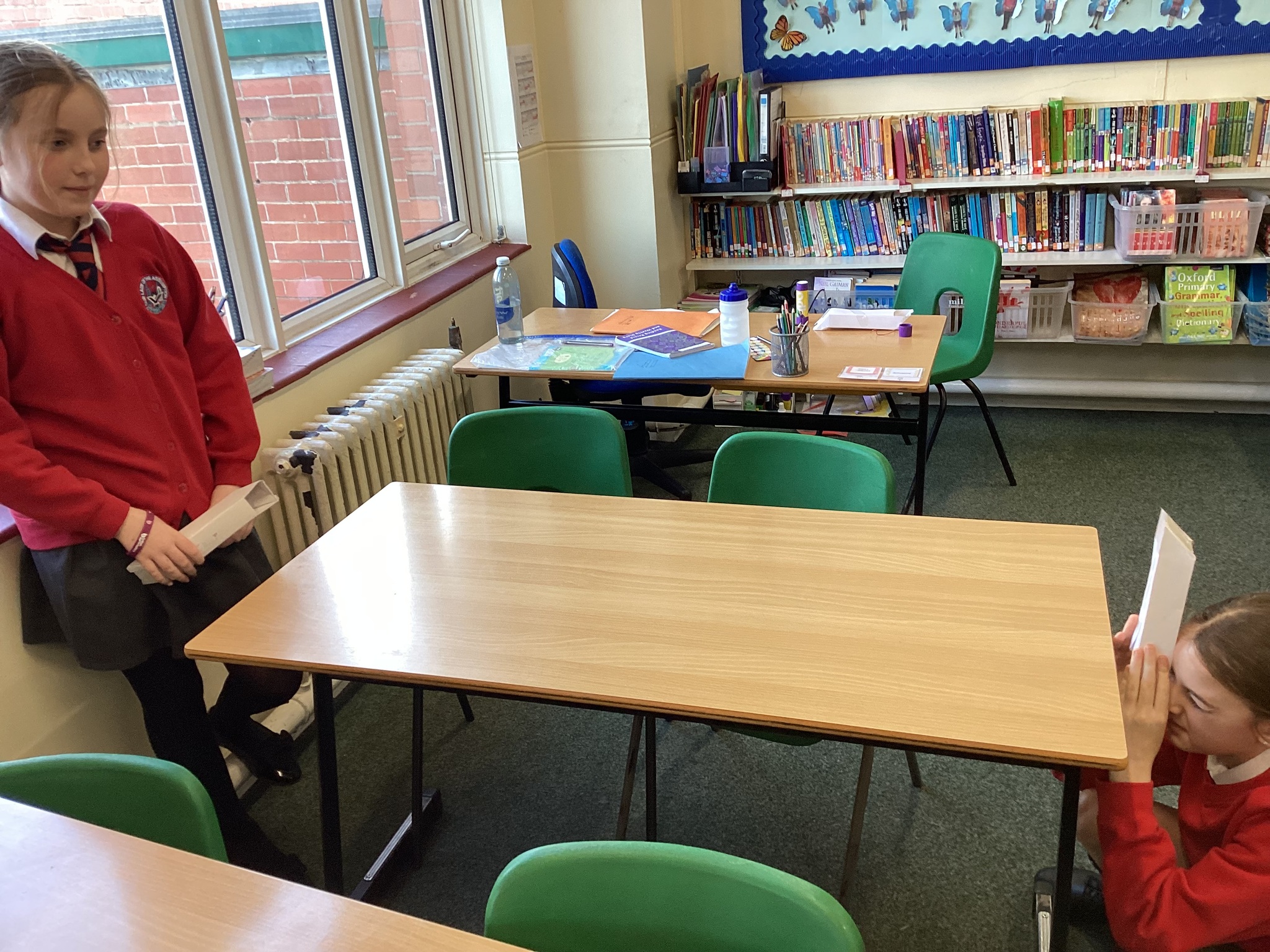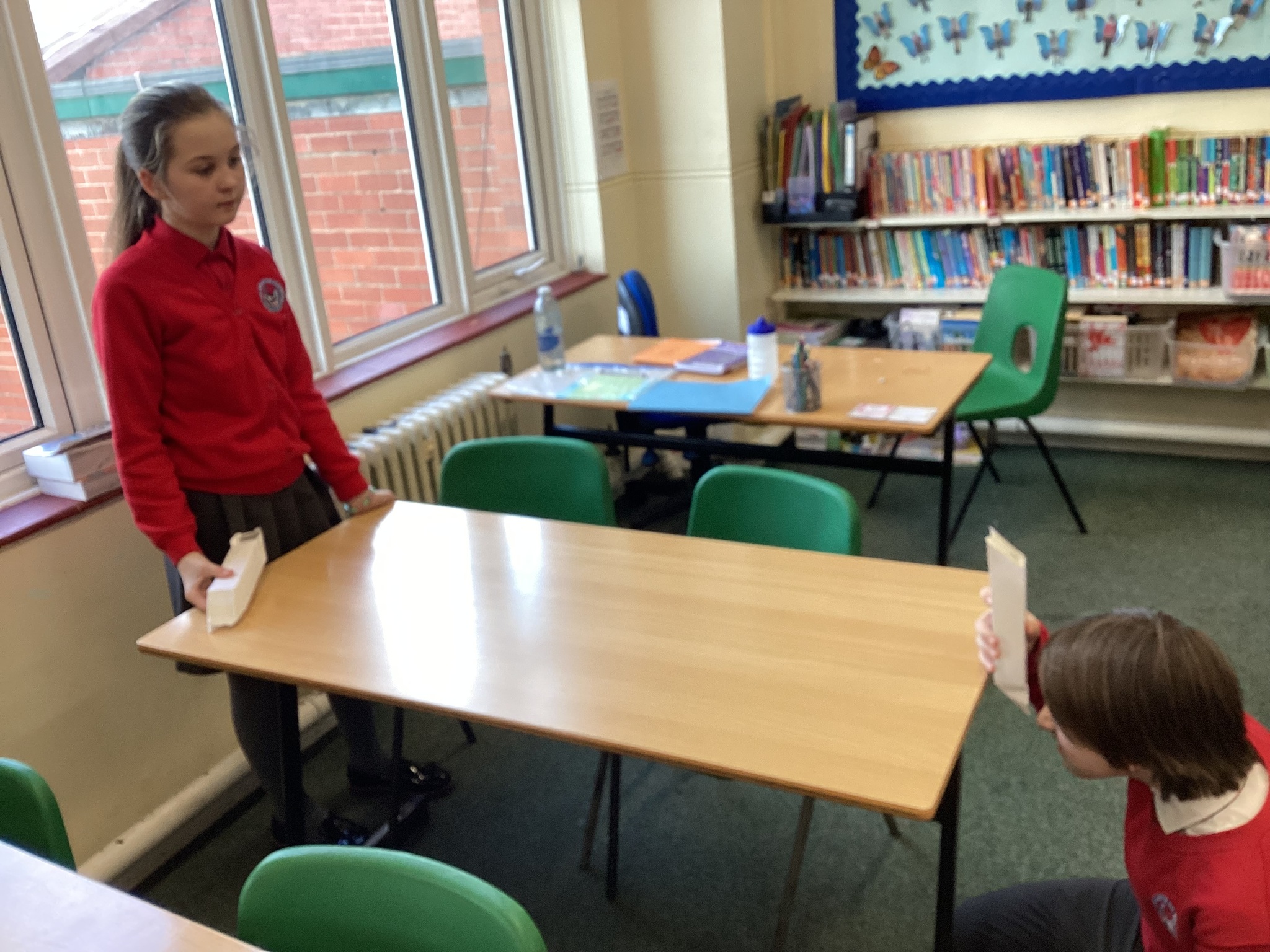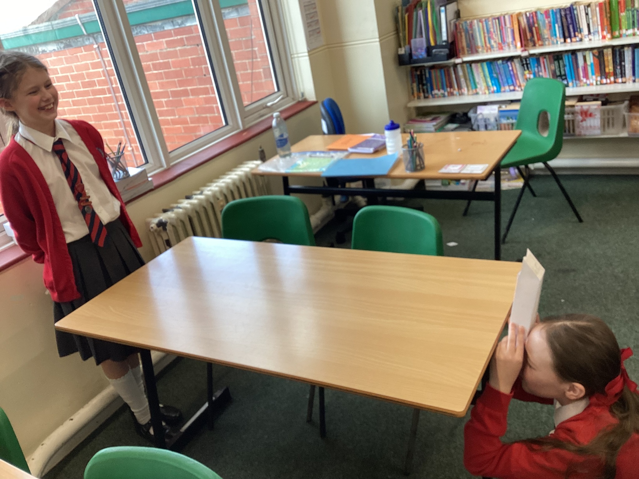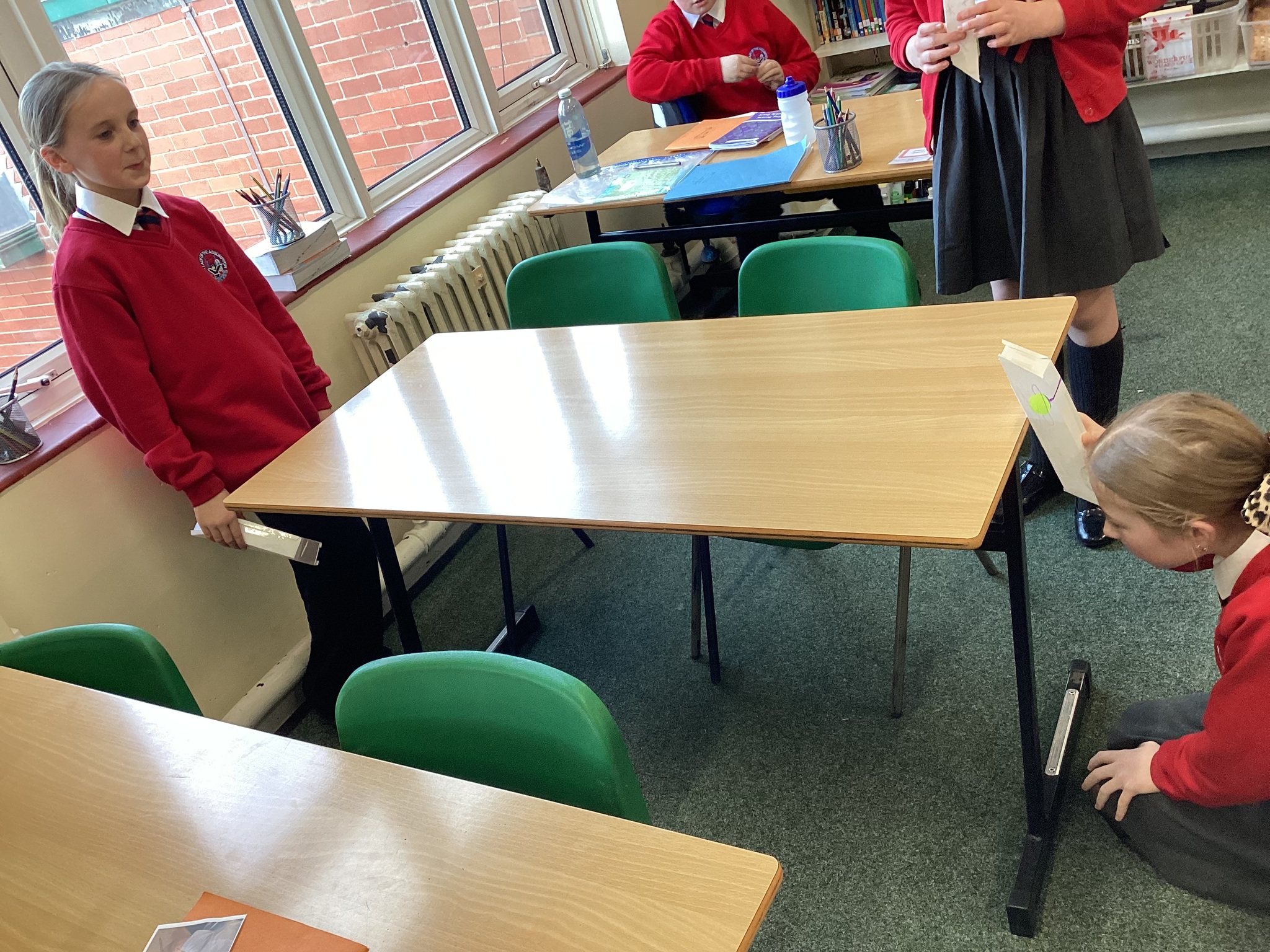 In Science we started our lesson by writing up a conclusion based on our investigation from last week. We then looked at how the refection of light on a mirror enables us to see things that are not in our direct line of sight. A prime example of this is a periscope. We made our own periscopes to prove that light does change direction when it reflects off certain surfaces, and this enables us to see things that are not in front of us. Next week we will draw scientific diagrams to show this too.