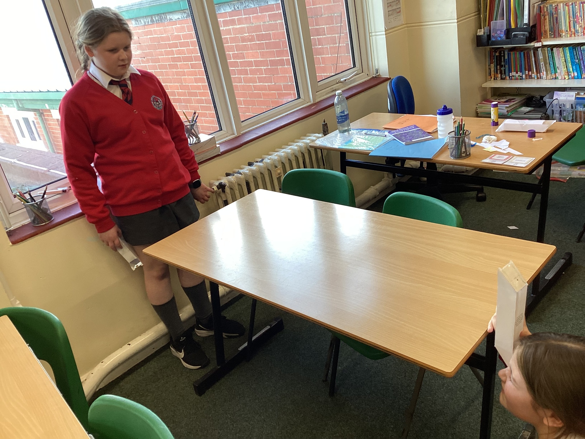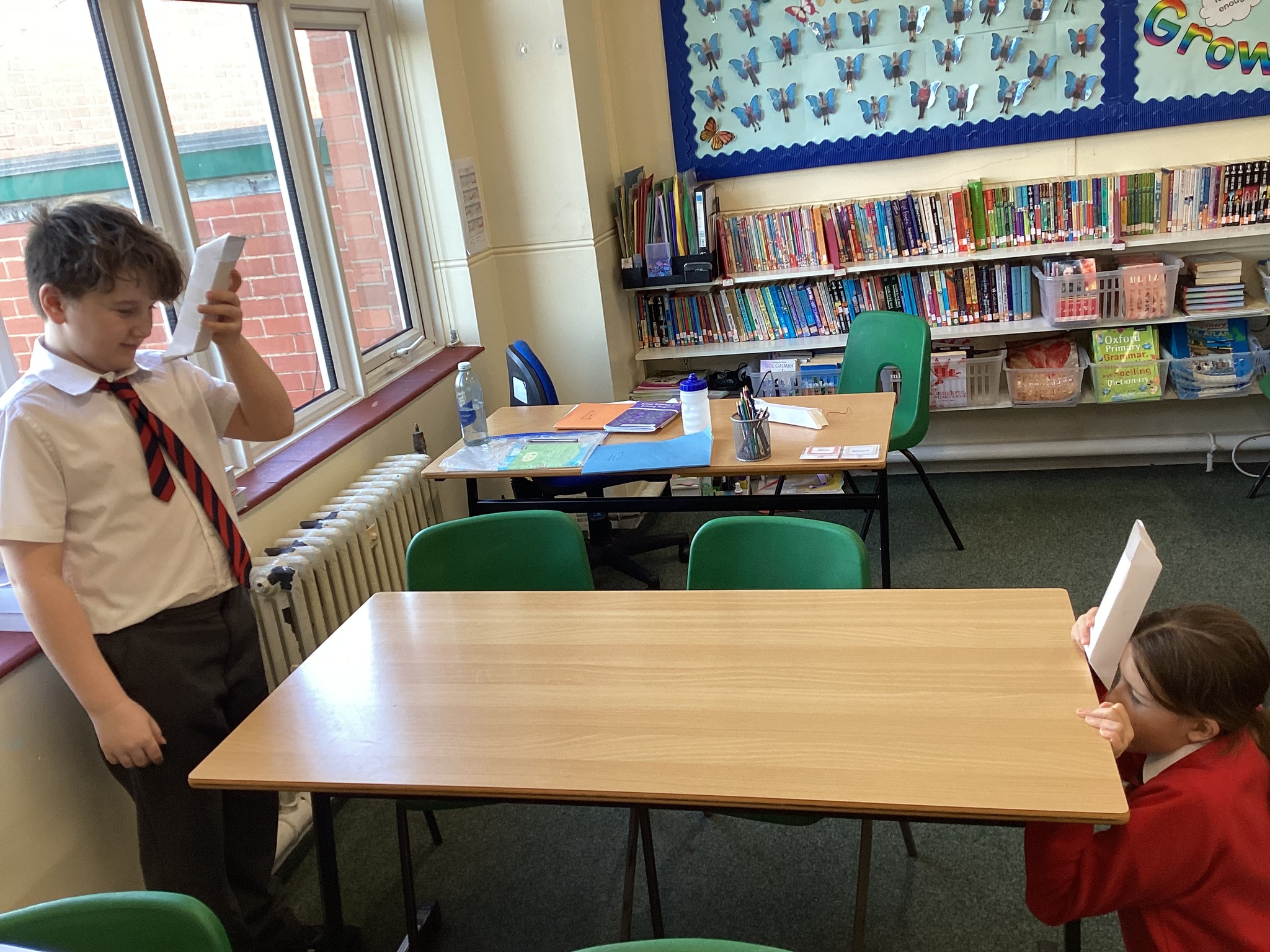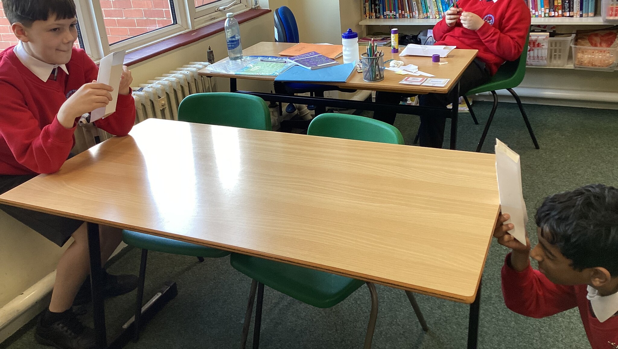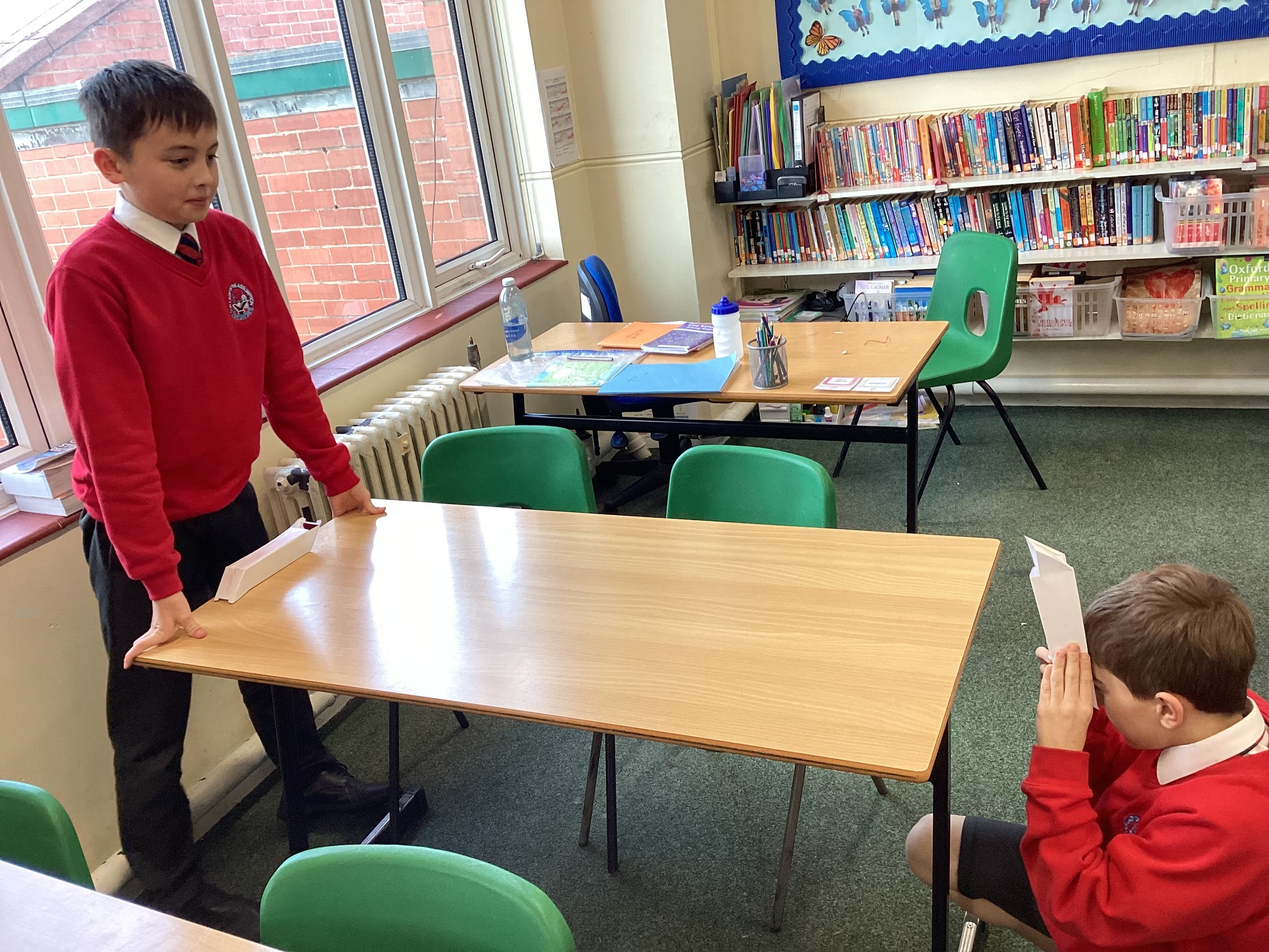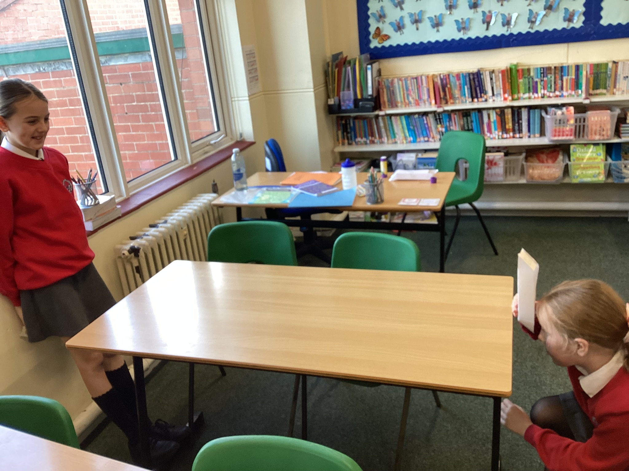 In Science we started our lesson by writing up a conclusion based on our investigation from last week. We then looked at how the refection of light on a mirror enables us to see things that are not in our direct line of sight. A prime example of this is a periscope. We made our own periscopes to prove that light does change direction when it reflects off certain surfaces, and this enables us to see things that are not in front of us. Next week we will draw scientific diagrams to show this too.